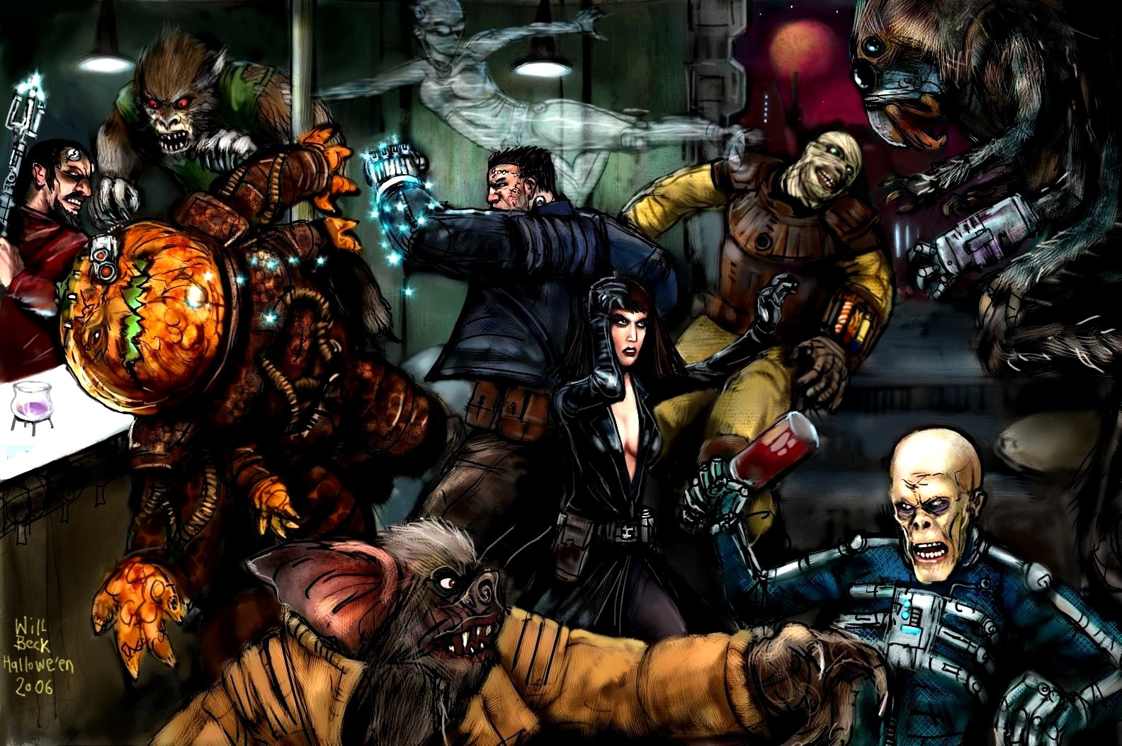 Halloween Cantina Brawl August 27, 2013 1584 × 1054 Halloween Cantina Brawl Halloween Cantina Brawl Halloween-themed Science Fiction characters in a cantina brawl Related Images: